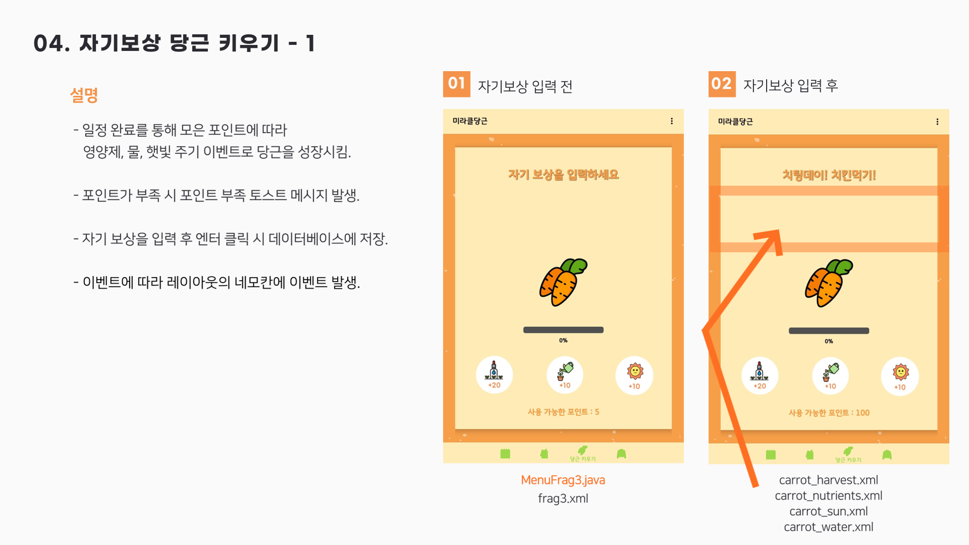 - 당근을 키워 성장해 수확하는 날은 내가 정해둔 보상을 하는 스스로의 약속