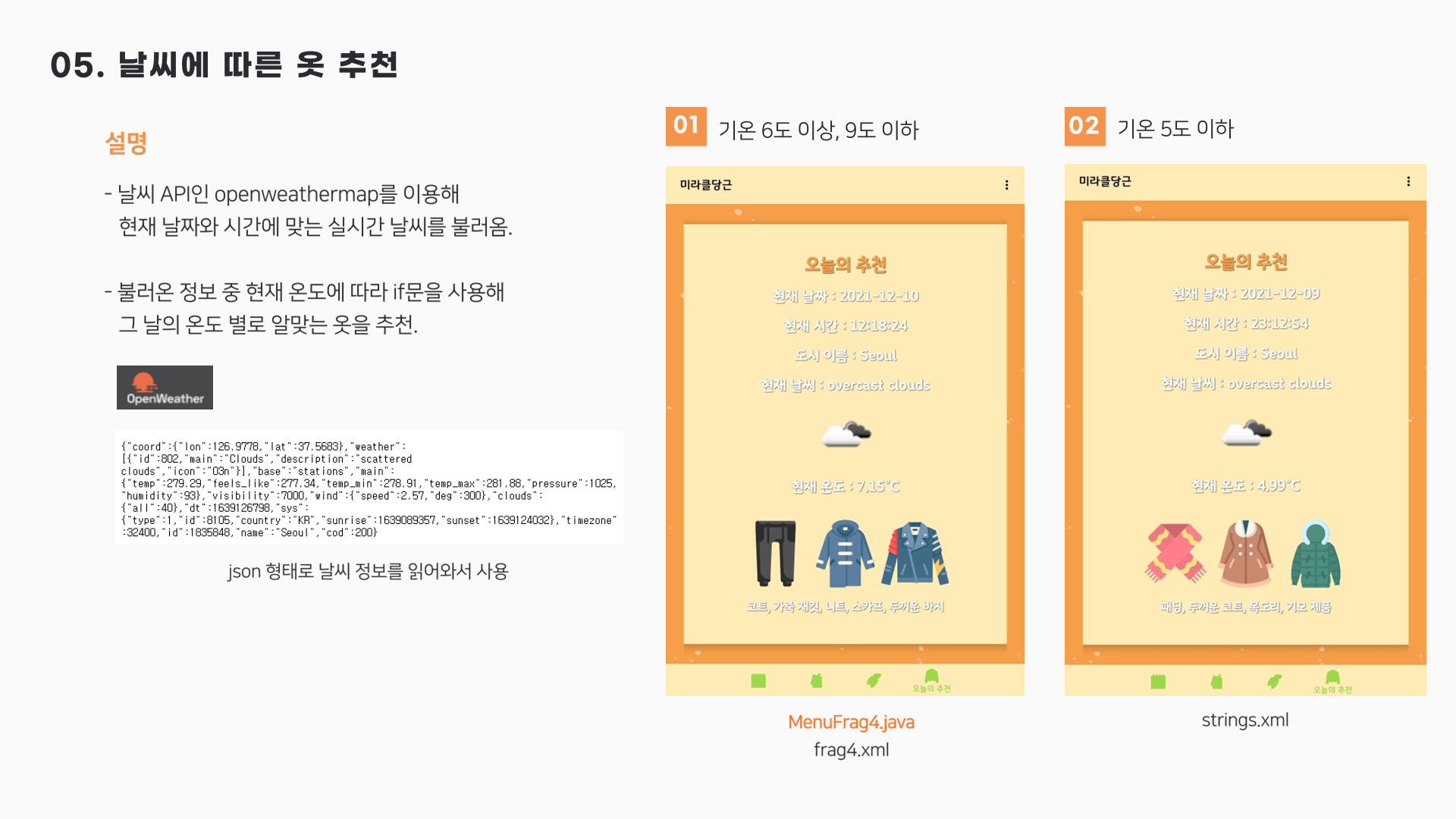 - 미라클 모닝 일정을 마치고 외출 준비를 도와주기 위해 날씨에 맞춘 옷 추천